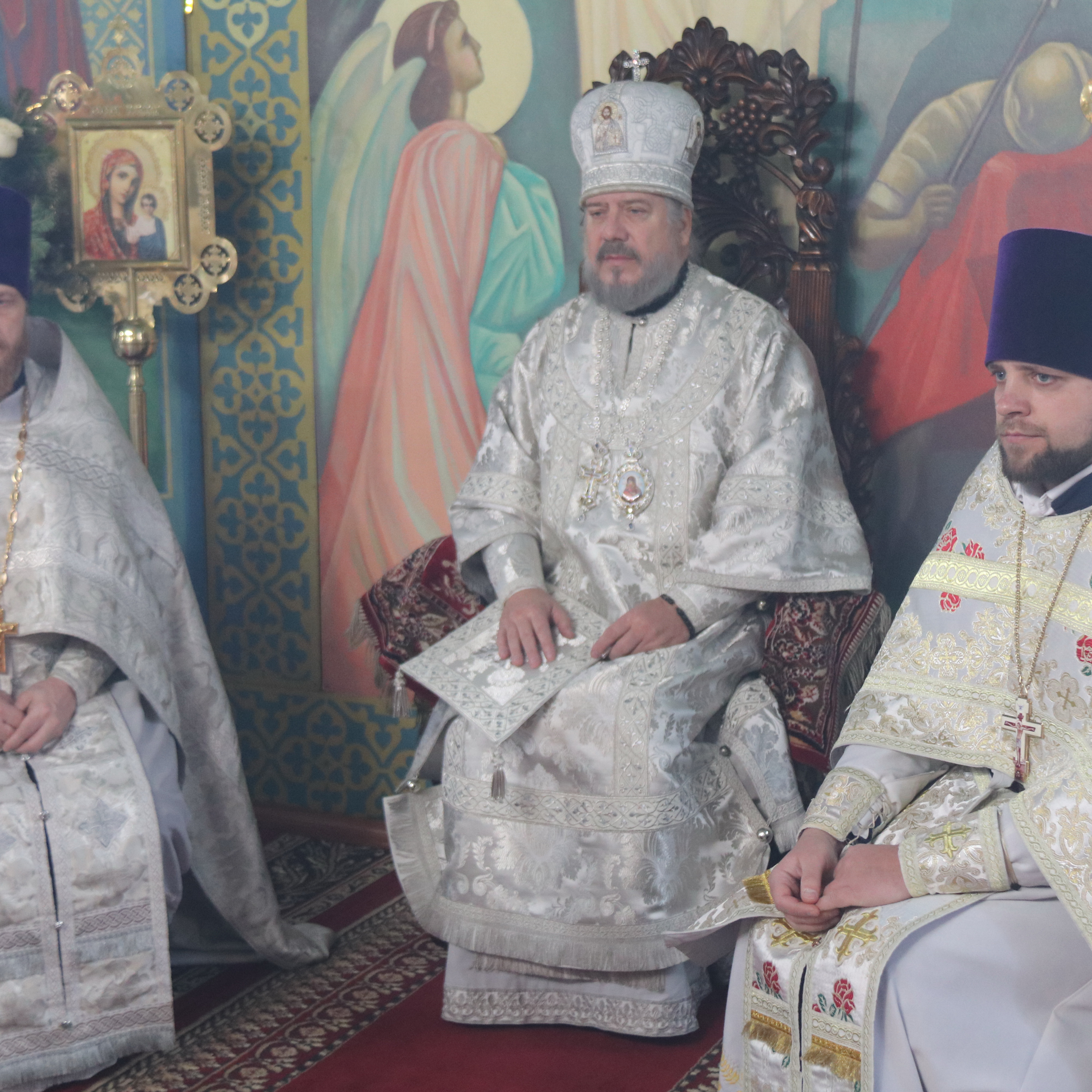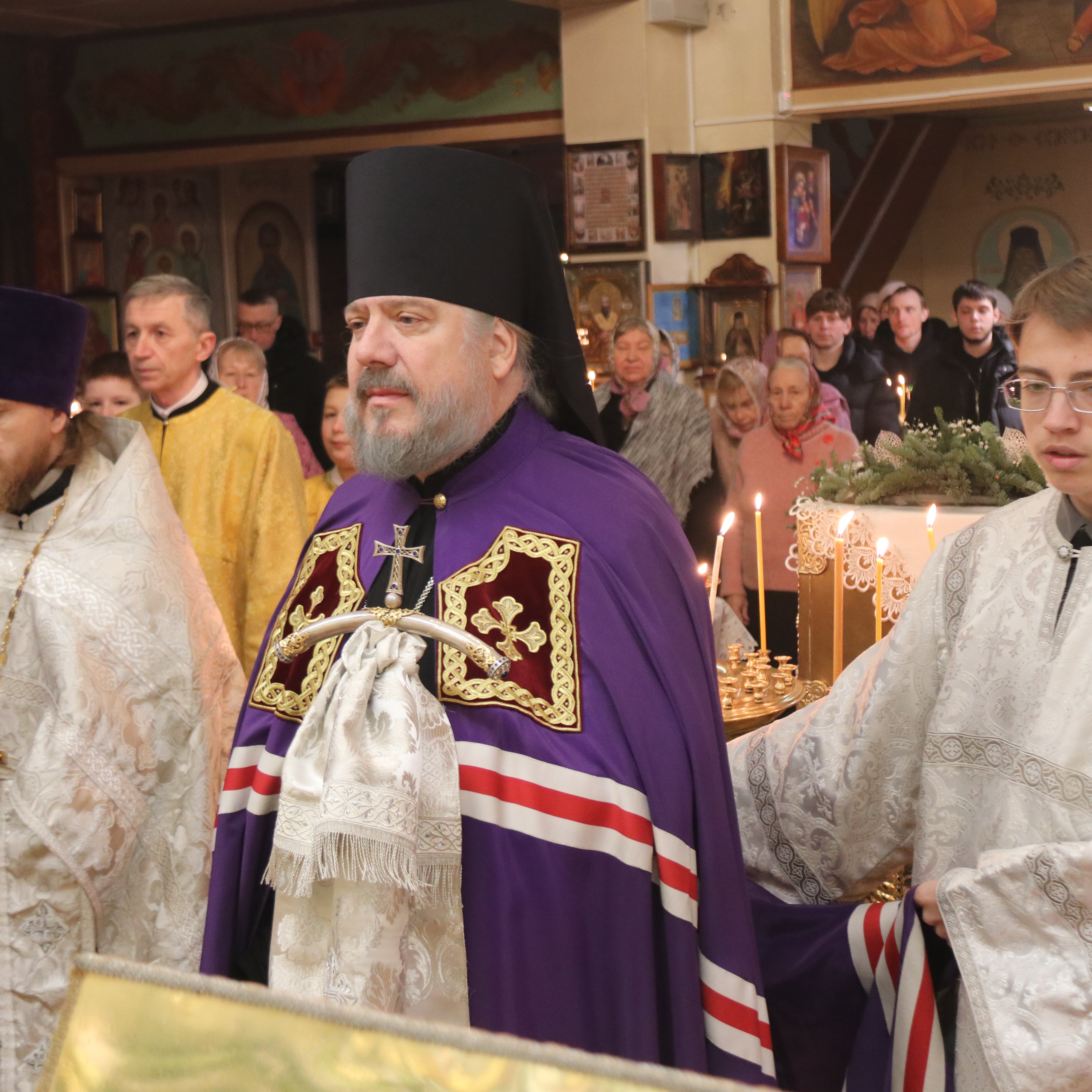 По заамвонной молитве епископ Николай, в сослужении духовенства Кафедрального собора, возглавил праздничное славление Рождеству Христову и обратился к прихожанам с архиерейским словом, в котором отметил жизненный подвиг празднуемых святых и поздравил всех присутствующих с Рождественскими святками.