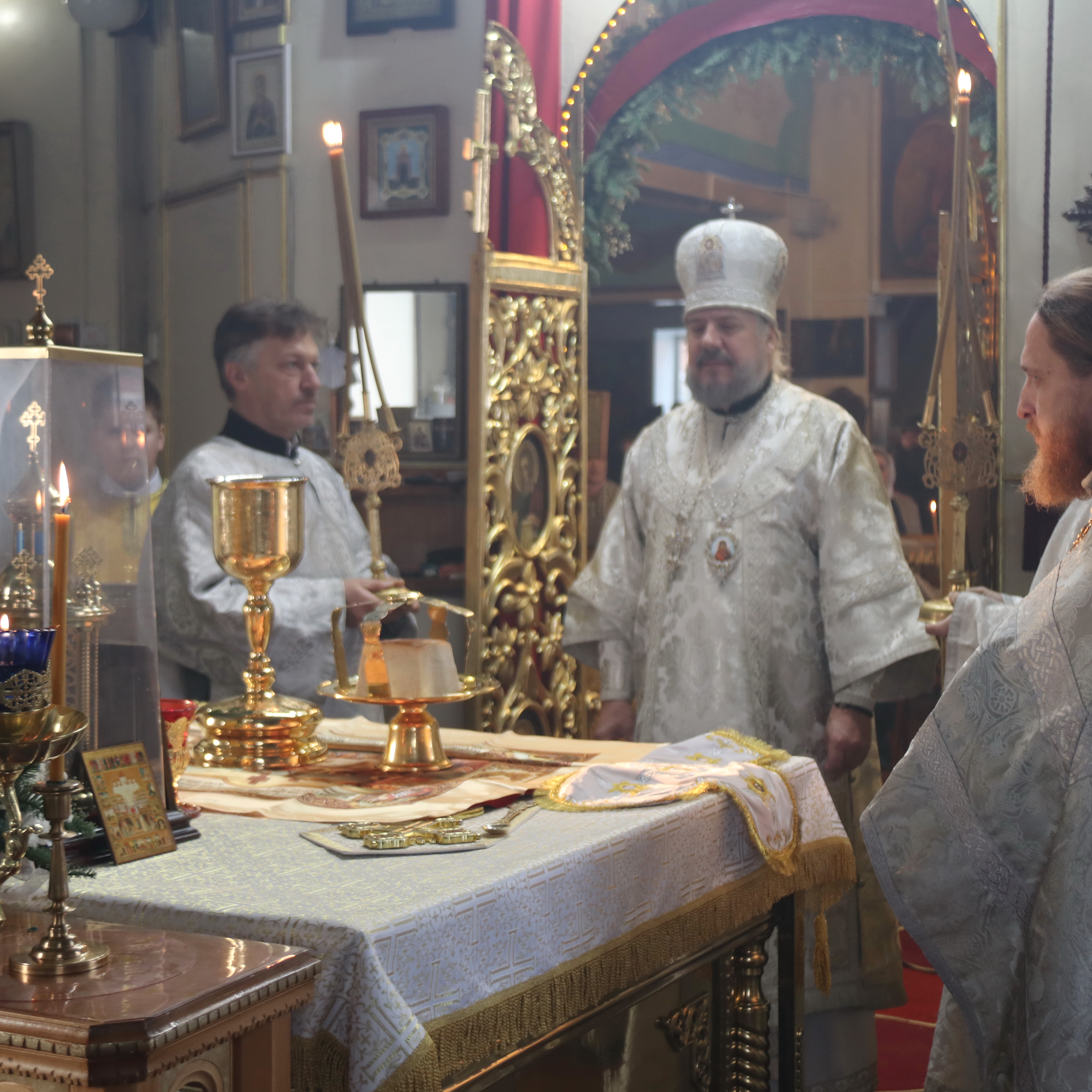 В неделю 31-ю, по Рождестве Христовом, памяти праведных Иосифа Обручника, Давида царя и апостола Иакова, брата Господня, епископ Находкинский и Преображенский Николай совершил Божественную литургию в храме Рождества Христова г. Находки.