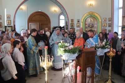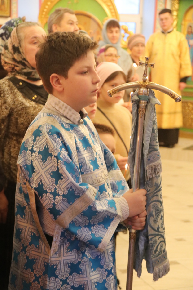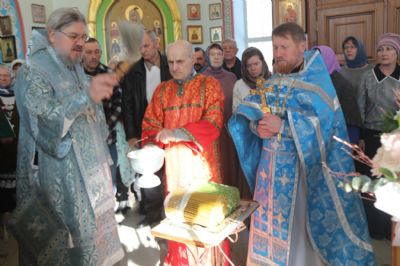 По заамвонной молитве епископ Николай, в сослужении священства, возглавил праздничное славление и совершил чин освящения "сретенских" свечей.