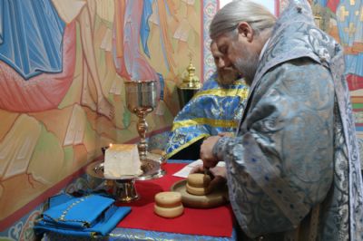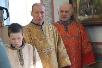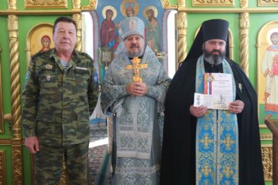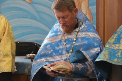Его Преосвященству сослужили: иеромонах Силуан (Березовский), настоятель храма; иерей Андрей Шкулипа, настоятель храма прп. Сергия Радонежского с. Сергеевка и иерей Андрей Калнин благочинный Казанского Кафедрального собора г. Находки.