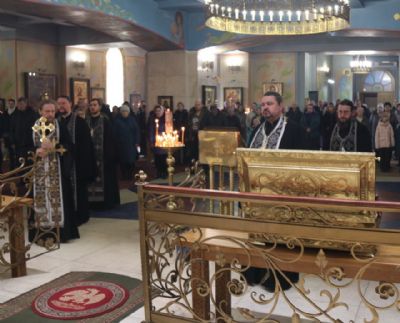После отпуста вечерни епископ Николай обратился к верующим со словами проповеди о прощении обид и прочитал молитву на начало поста Святыя Четыредесятницы.
