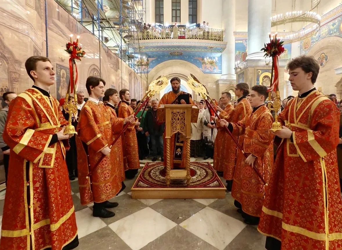 Его Высокопреосвященству сослужили: ключарь собора иерей Максим Точуков, игумен Атоний (Каменчук), иерей Димитрий Винокуров, иерей Димитрий Брызгалов, иерей Александр Соколов, протодьякон Адриан Чунчук и диакон Василий Талько.