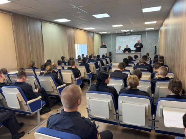 Среди докладчиков был руководитель епархиального отдела по взаимодействию с правоохранительными органами и МЧС иерей Дмитрий Брызгалов. Отец Дмитрий провел со студентами откровенную беседу о религиозном сознании и традиционных семейных ценностях. Он начал с объяснения, что религиозное сознание — это внутреннее осмысление своей веры, духовных ценностей и понимание смысла жизни через призму веры. Он подчеркнул, что вера помогает человеку ориентироваться в сложных ситуациях, укрепляет моральные принципы и способствует формированию нравственного характера.