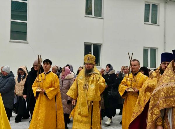 По окончании Литургии митрополит Павел, духовенство и прихожане совершили крестный ход вокруг храма, во время которого верующих окропляли святой водой.