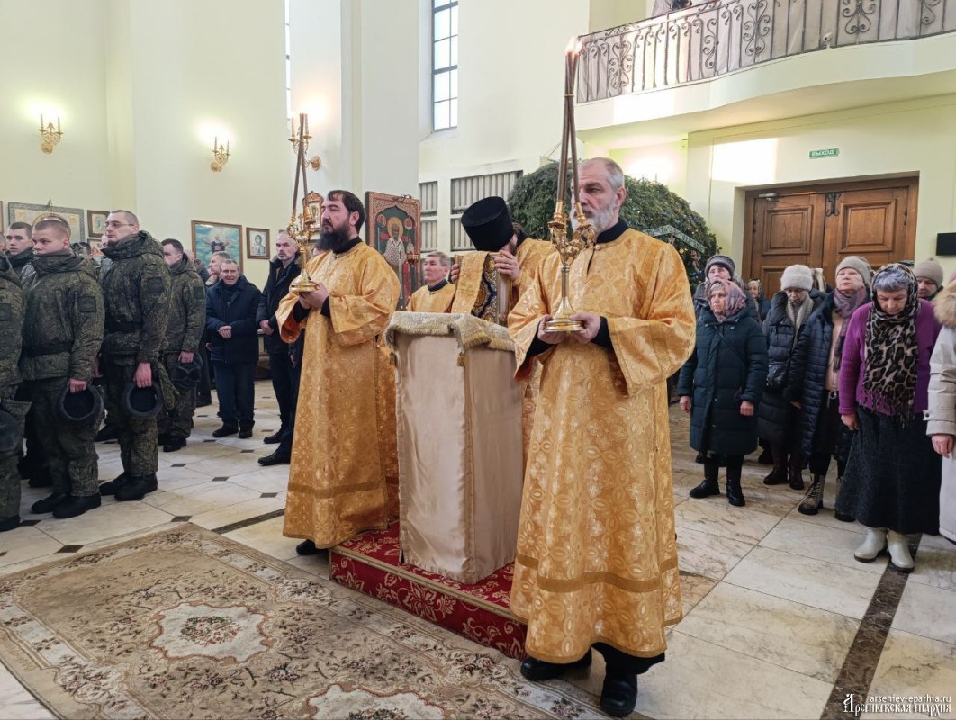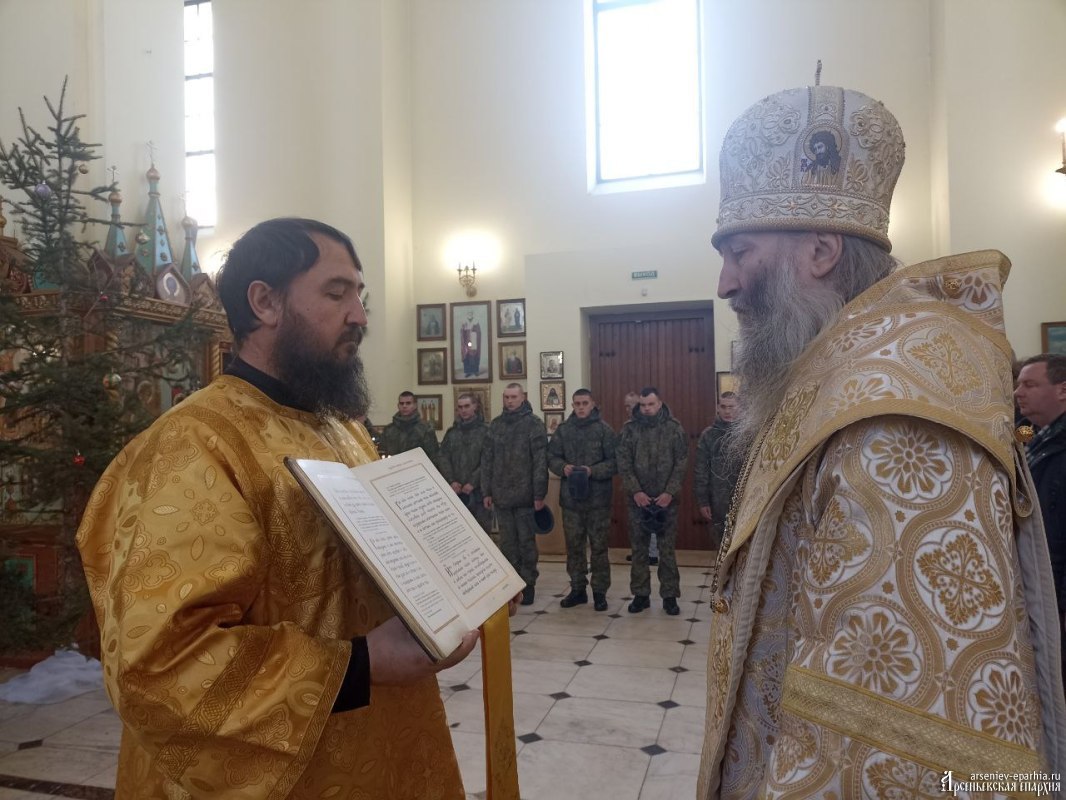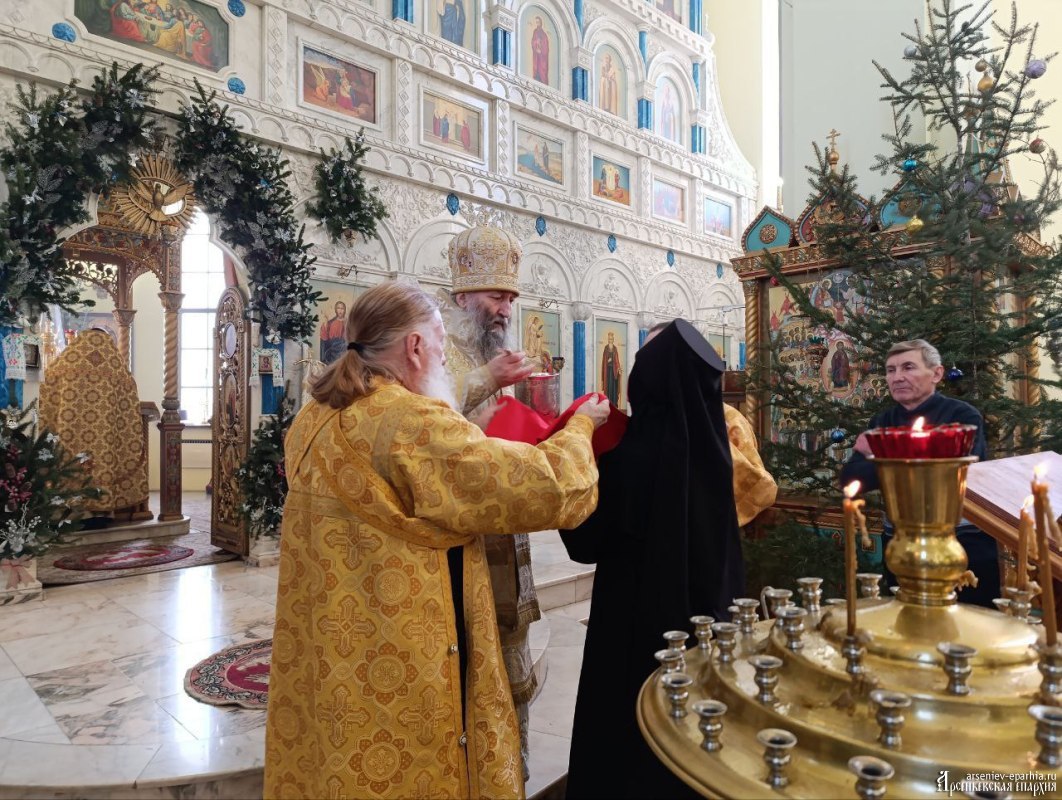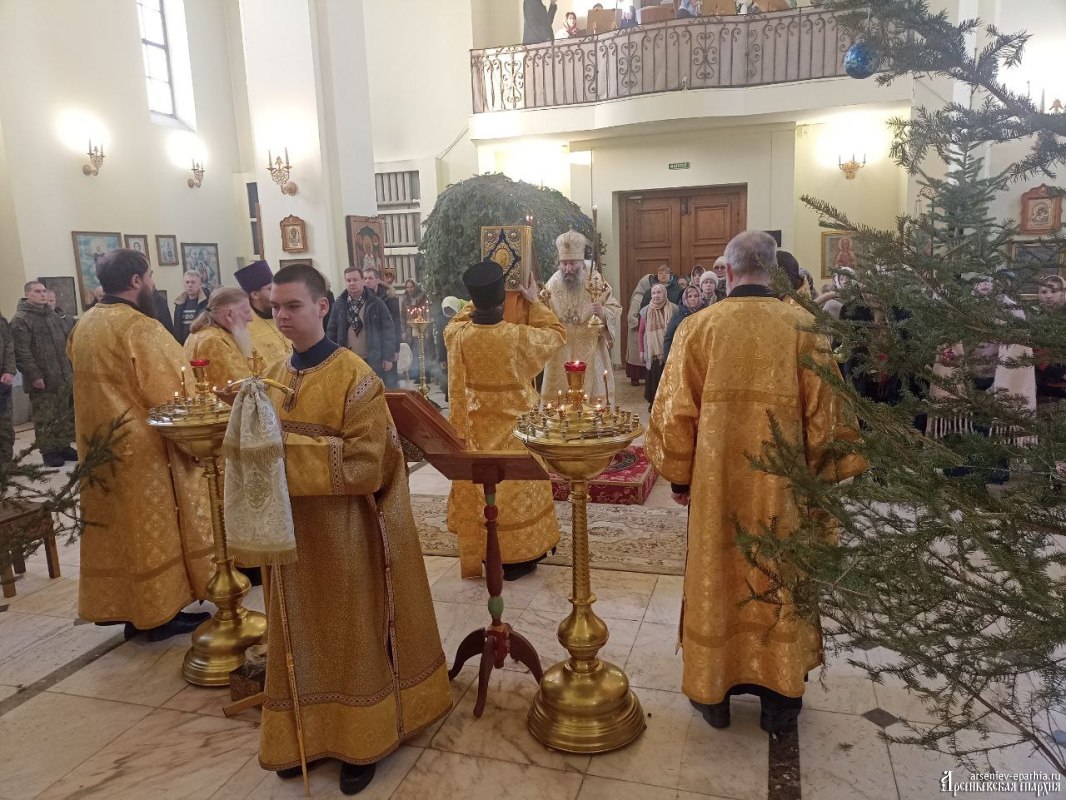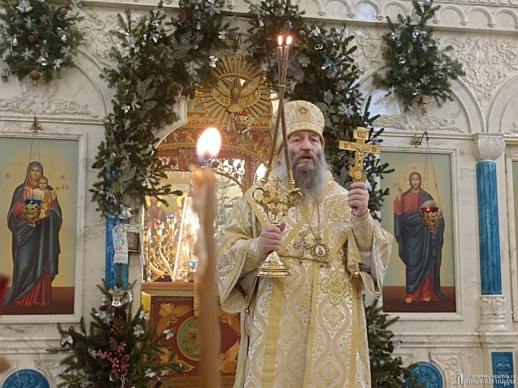 В этот день, 4 января 2026 года, в Неделю 30-ю по Пятидесятнице, день памяти святых отец, епископ Арсеньевский и Дальнегорский Гурий совершил Божественную литургию в Кафедральном Благовещенском соборе г. Арсеньева.