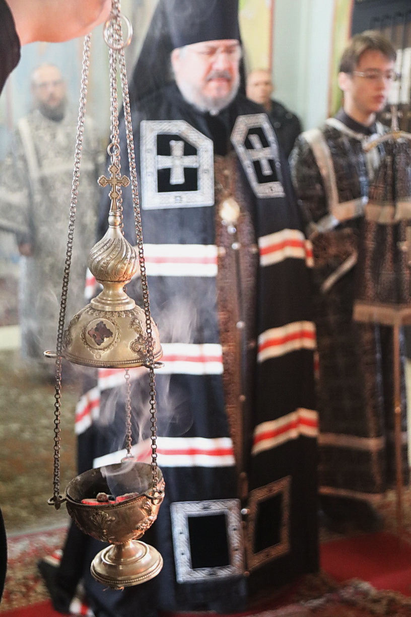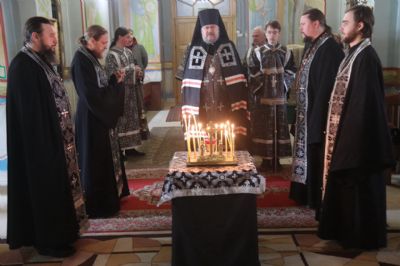 По окончании богослужения, в сослужении духовенства собора, епископ Николай совершил заупокойную литию и обратился к молящимся с архипастырским словом.