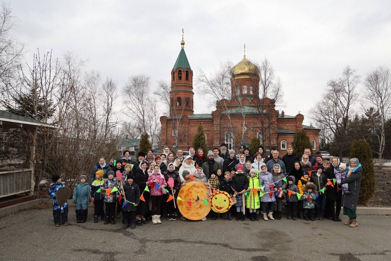 Учащиеся воскресной школы при храме с нетерпением ожидали начала праздненства прощания с зимой. На предшествующих занятиях учителя рассказали детям о важности Прощённого воскресения и научили правильно просить прощения, ведь вступать в Великий пост нужно с чистой совестью и в мире с ближними.
