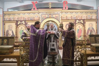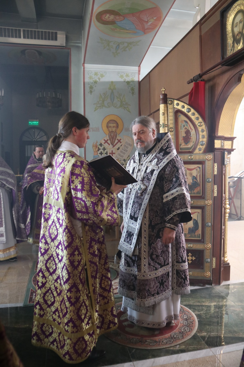 Епископ Находкинский и Преображенский Николай в сослужении епархиального духовенства совершил Литургию Преждеосвященных Даров в Кафедральном Казанском соборе г. Находки.