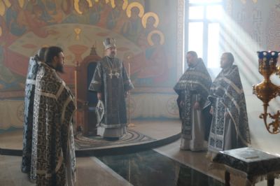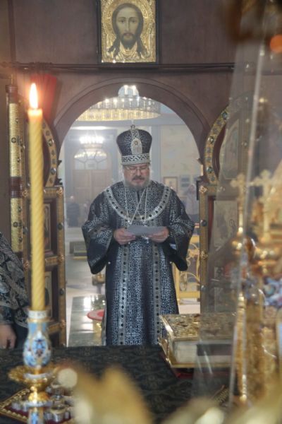 Его Преосвященству сослужило духовенство собора.