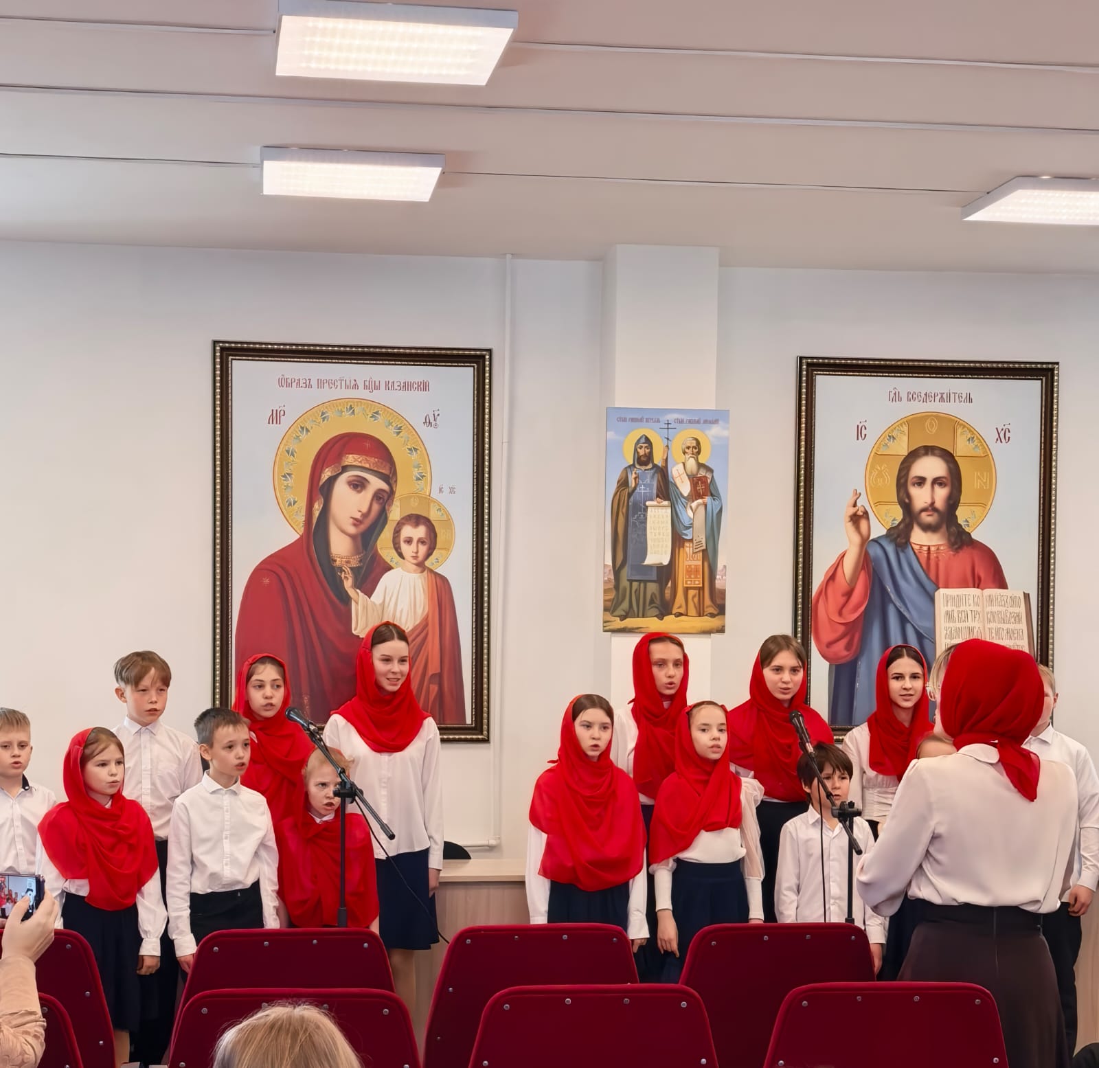 Мероприятие получилось поэтически-музыкальным. Ребята читали стихи о Воскресении Христовом, играли на разных музыкальных инструментах: аккордеоне, гитаре, пианино. Хор воскресной школы стал большим. Теперь на занятия хора приходят не только воспитанники 14-17 лет, но и дети 8-10 лет. Хоровое исполнение песен «Солнце торжественно мир освещает», «Он Воскрес, во истину Воскрес!» очень понравилось всем присутствующим.