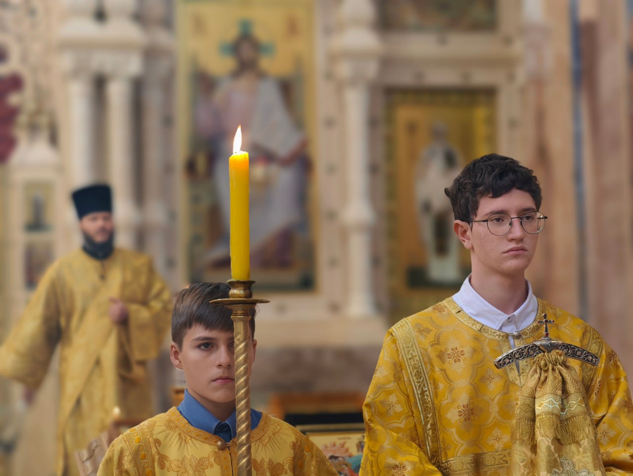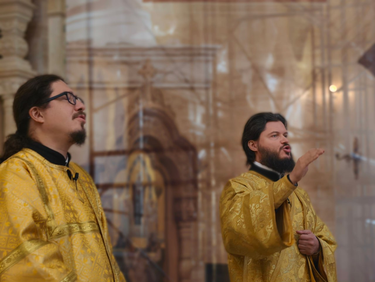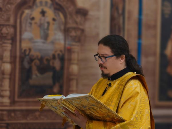 Песнопения литургии исполнил хор кафедрального собора под управлением регента Е. Кохановской.