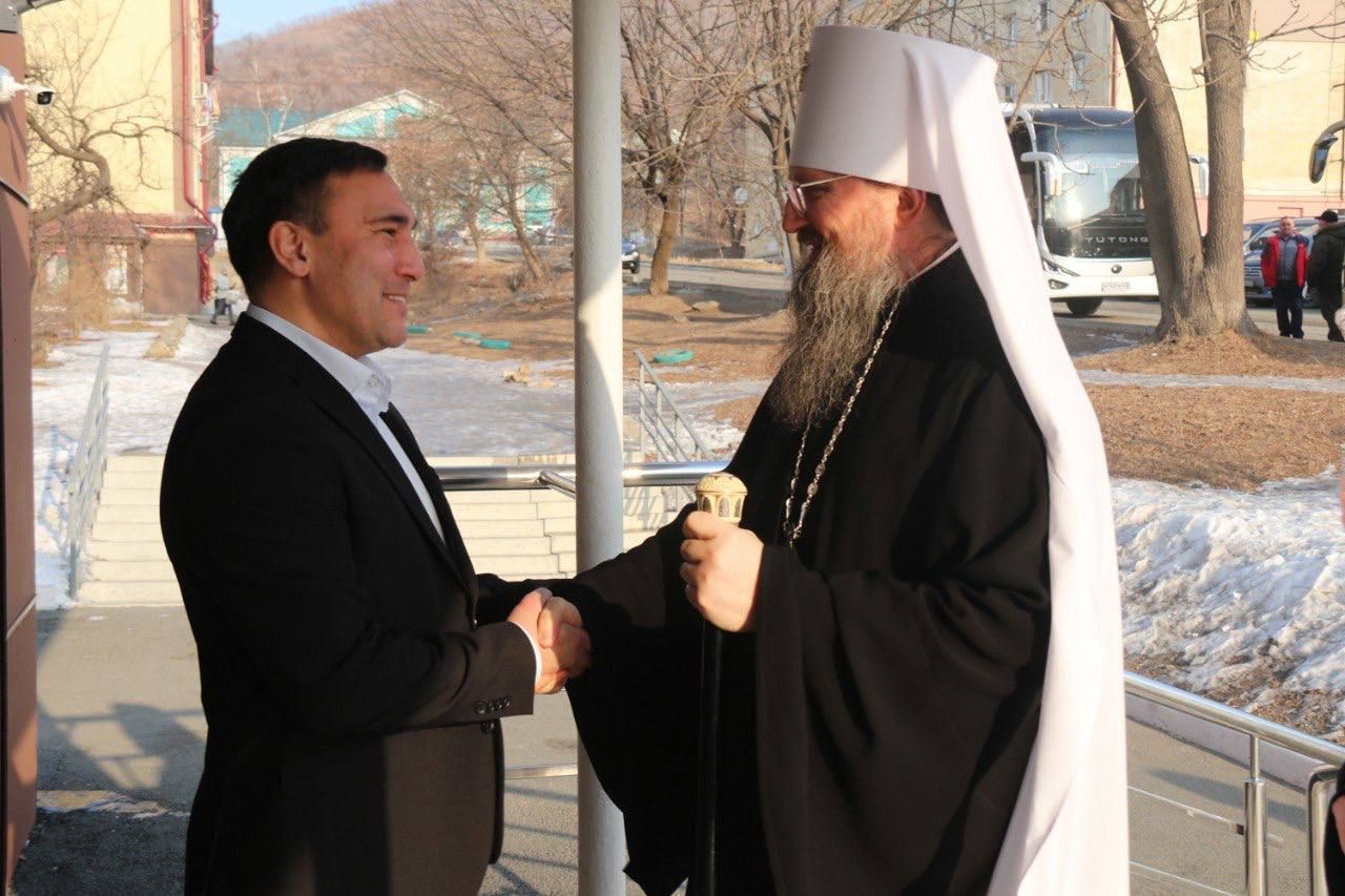 13 февраля по завершению координационного совета по культуре митрополит Владивостокский и Приморский Павел провел рабочую встречу с главой г. Находки Тимуром Магинским.