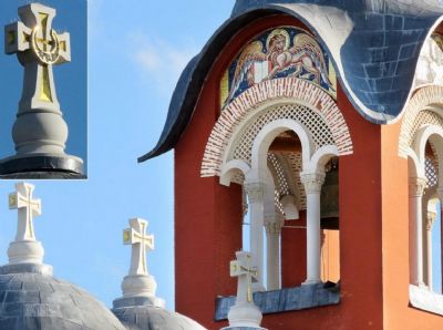 Черное (свинцовое) покрытие куполов выполнено в стиле северных храмов и монастырей. Такое покрытие служит 300-400 лет. Золоченый крест на шлемовидном куполе часовни рядом с храмом — точная копия креста на Успенском соборе во Владимире. Главный колокол звонницы весит около 5 тонн.