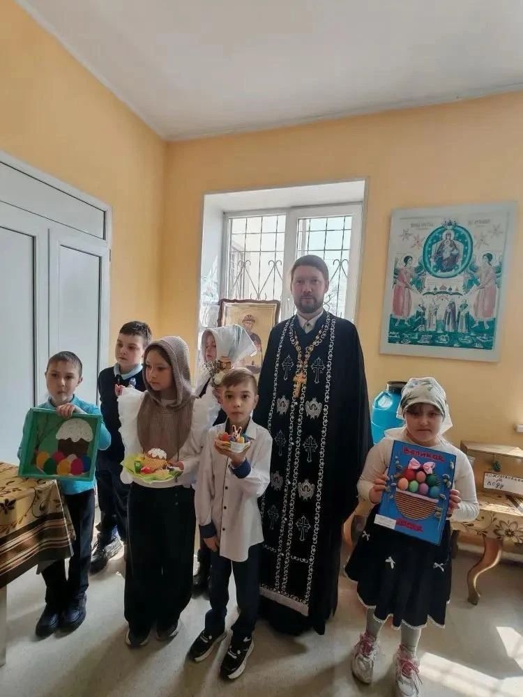 Помимо этого, ребята подготовили рисунки и поделки на Пасхальную тематику. В завершение встречи отец Андрей вместе с преподавателями и учениками устроили дружеское чаепитие, а общее фото на память стало доброй традицией и символом дружбы между школой и приходом.
