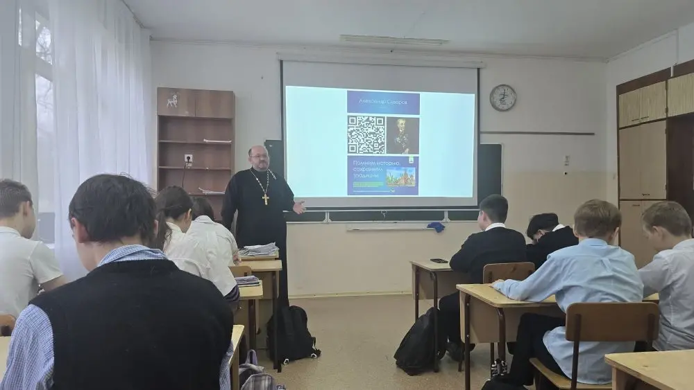 Руководитель Отдела религиозного образования и катехизации Находкинской епархии иерей Роман Капитанюк встретился с учащимися 7-х и 8-х классов СОШ № 4 г. Большой Камень.