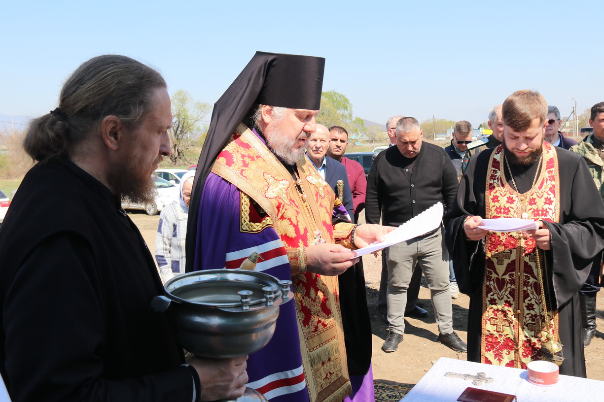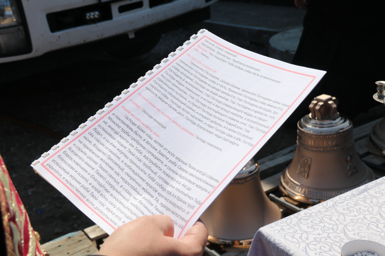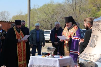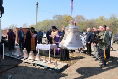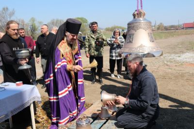 Епископ Находкинский и Преображенский Николай совершил чин освящения колоколов для храма в честь иконы Божией Матери Всецарицы п . Новицкое.