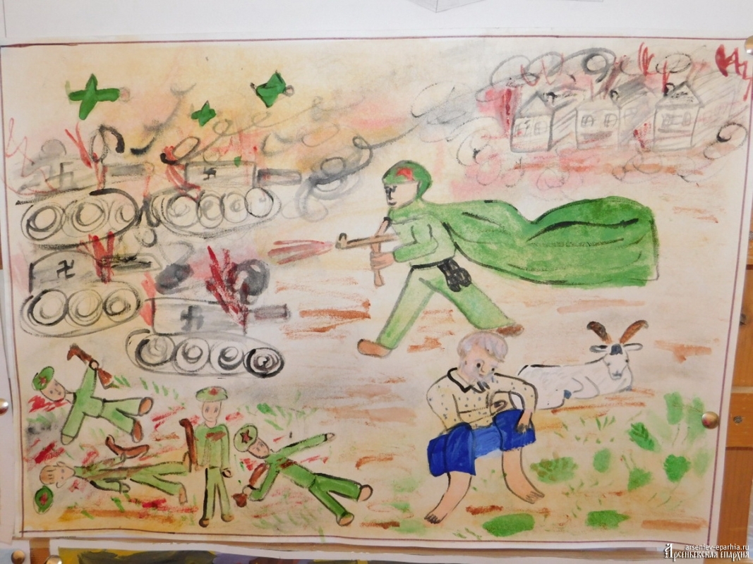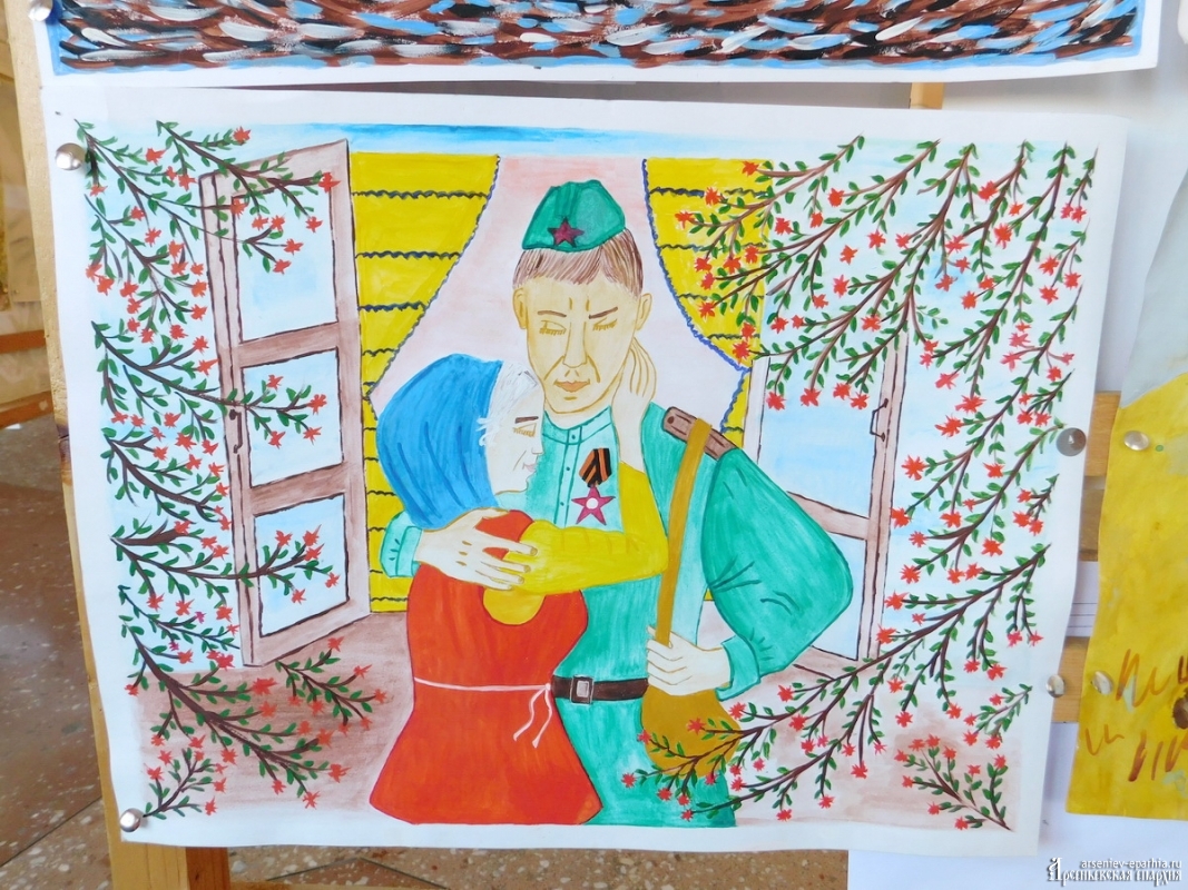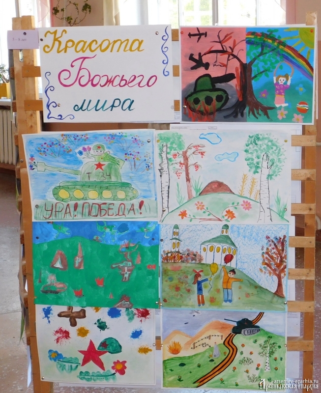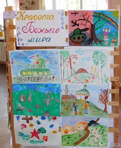 На выставке было представлено около 100 работ. В каждой возрастной категории жюри определило победителей. Так, в возрастной категории до 8 лет диплома 1 степени удостоена работа «Салют Победы» Марии Лютник, дипломы 2 степени получили работы Варвары Салимовой («Ура. Мы победили»), Юлии Зацепиной («Победа близка»), дипломами 3 степени отмечены работы Виктории Сорокиной («День Победы»), Дианы Кузнецовой («Россия, вперед»), Веры Волошиной («Скорбь матери»).