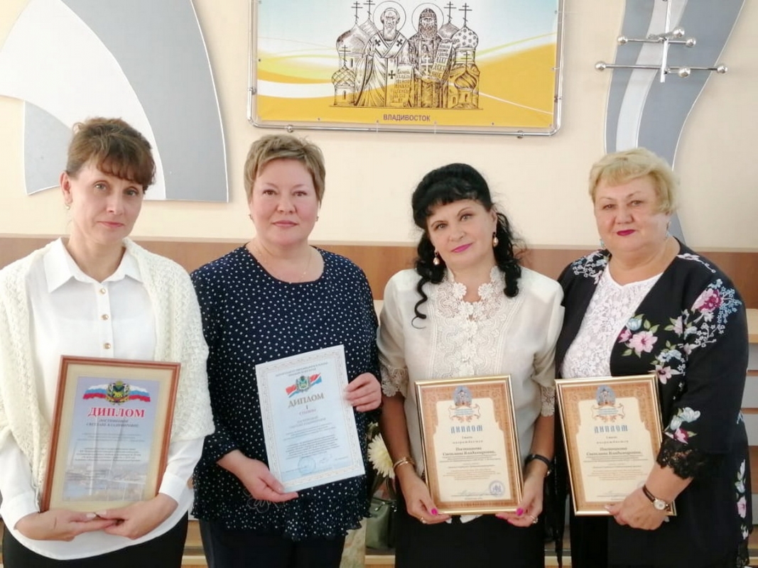 Постникова Светлана Владимировна, старший воспитатель детского сада, как автор проекта «Помним! Гордимся!», на конференции была награждена Дипломами Приморской митрополии Русской Православной Церкви, департамента образования и науки Приморского края за победу в региональном и межрегиональном этапах Всероссийского конкурса «За нравственный подвиг учителя» в 2019 году.