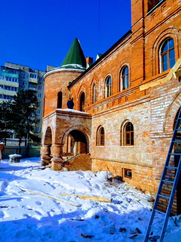 Владыка Гурий провел для нас экскурсию по храму, епархиальному управлению и строящемуся Духовно-просветительскому центру.