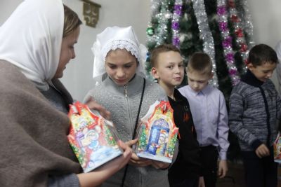 В конце каждого выступления ребята подарили подопечным социальных учреждений сладкие подарки от Арсеньевской епархии.