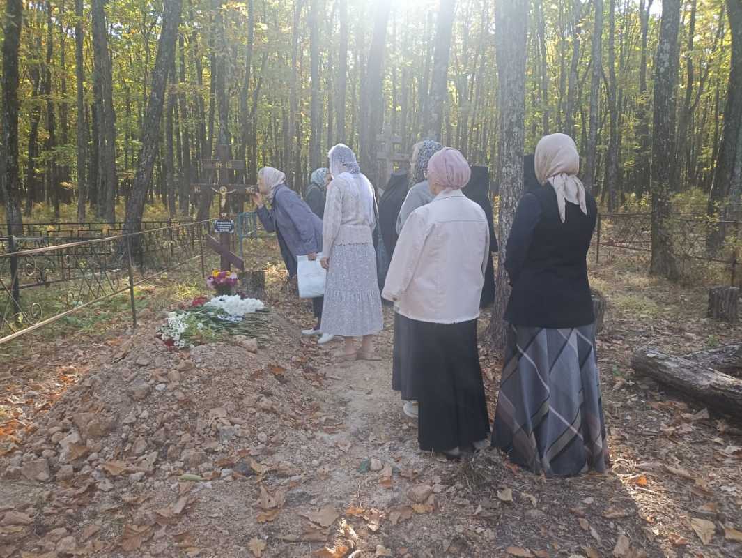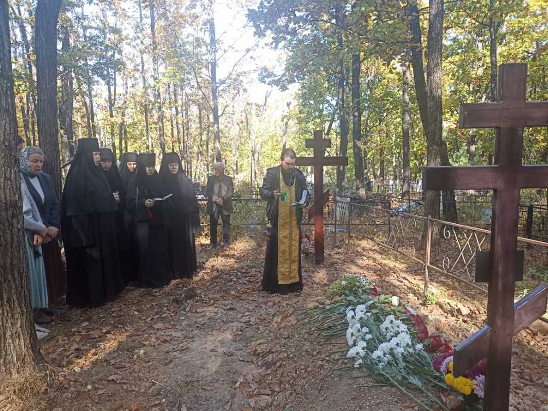 По окончании панихиды на монастырском кладбище с. Таёжка, где захоронено тело почившей, отец Кирилл совершил литию.