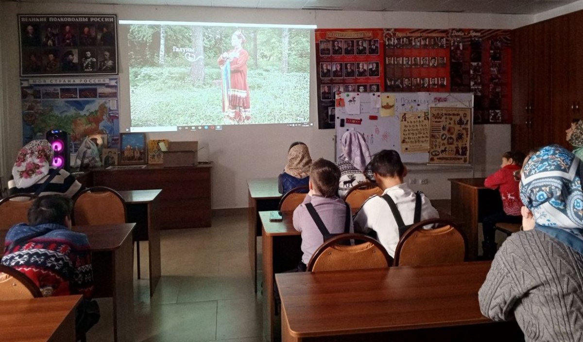 На вводном занятии Татьяна Геранимовна Белова – методист Отдела образования Арсеньевской епархии и одна из инициаторов проекта – показала участникам фильмы, раскрывающие уникальность и красоту русского народного костюма.