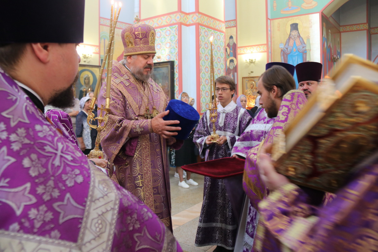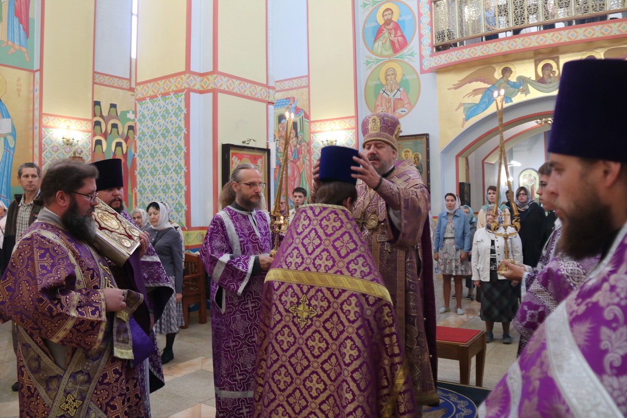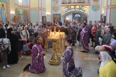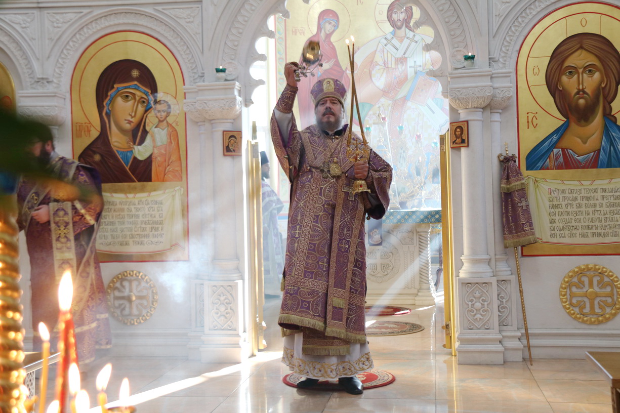 По заамвонной молитве епископ Николай, в сослужении духовенства собора, совершил праздничное славление Животворящему Кресту и обратился к присутствующим с архиерейским словом.По окончании богослужения был организован сбор средств для мирных жителей Донбасса, Новороссии и обстреливаемого приграничья.