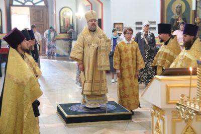 В день перенесения мощей свв. блгвв. кн. Петра и кн. Февронии и Церковного новолетия в Спасо-Преображенском кафедральном соборе состоялась торжественная соборная Литургия