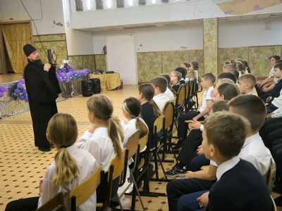 Такая обширная тема была выбрана для разговора священнослужителя с учениками 4-ых классов в СОШ №20 п. Врангель. Беседу, по благословению епископа Николая, провел иеродиакон Филарет (Каширский).