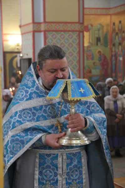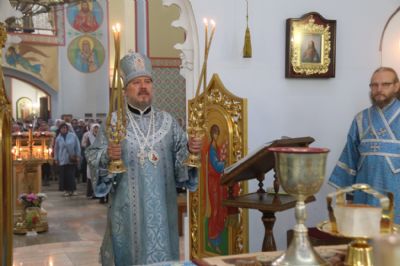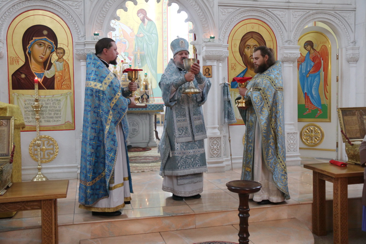 Его Преосвященству сослужили: иерей Виталий Шаркеев; иерей андрей Попов; иерей Иоанн Гречишников.