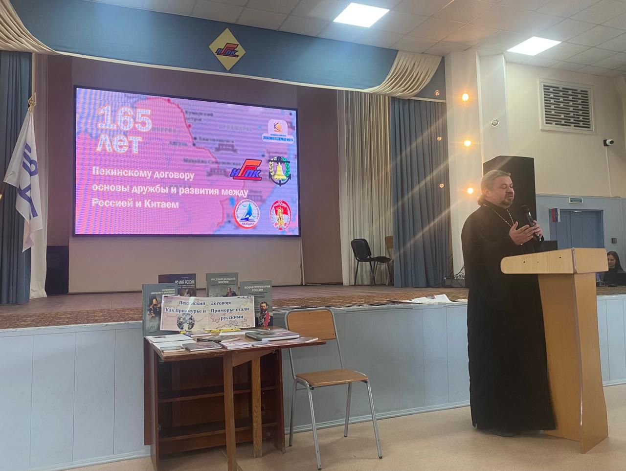 Руководитель миссионерского отдела Находкинской епархии иерей Виталий Шаркеев выступил с докладом на открытых общественных слушаниях, посвященных 165 -летию Пекинского договора — основы дружбы между Россией и Китаем.