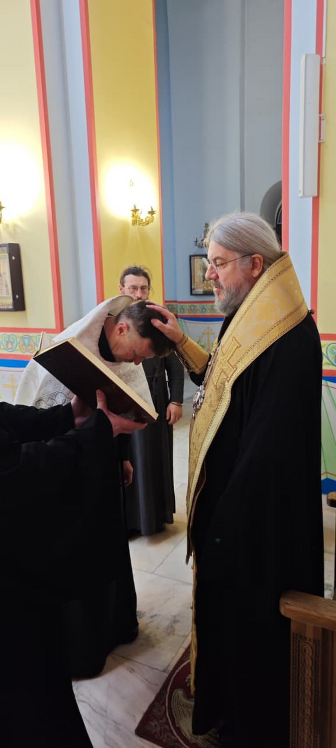 За вечерним богослужением, Владыка совершил постриг во чтеца, Михаила Красильникова, алтарника храма Рождества Христова г. Находки.