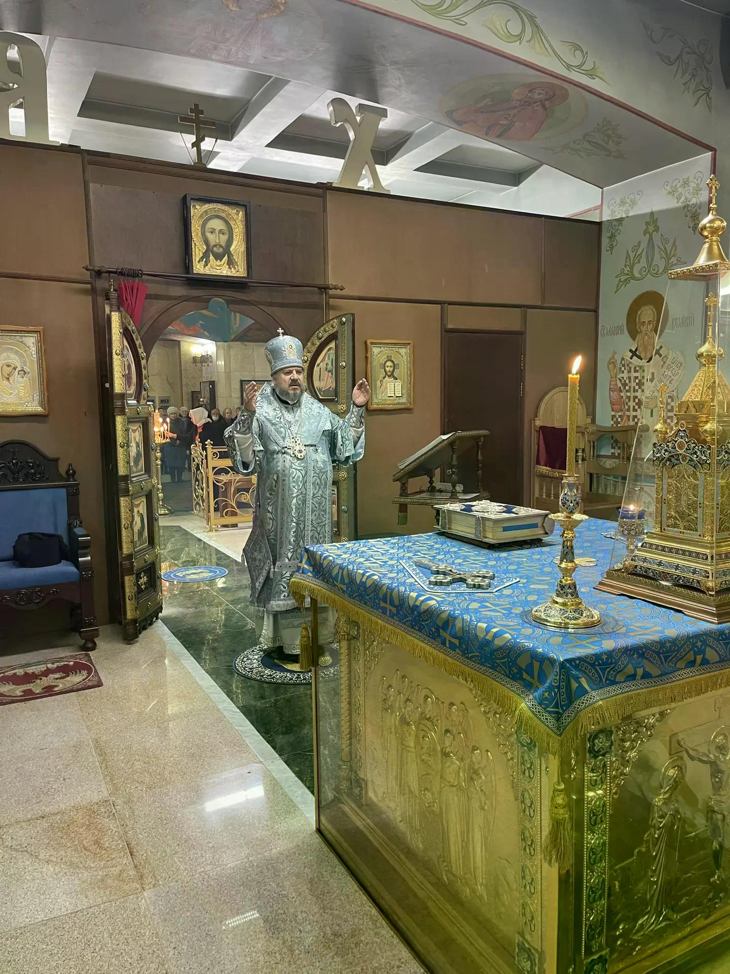По заамвонной молитве епископ Николай, в сослужении духовенства Собора, возглавил праздничное славление Богородице и обратился к прихожанам храма с архиерейским словом, в котором в частности сказал: «Пречистый храм Спасов, многоценный чертог и Дева, священное сокровище славы Божия, днесь вводится в дом Господень, благодать совводящи, Яже в Дусе Божественном, Юже воспевают Ангели Божии: Сия есть селение Небесное, – такие удивительные слова слышали мы в кондаке праздника Введения.