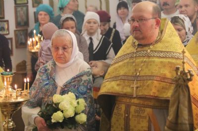 В ответном слове иерей Роман поблагодарил Владыку за совместную молитву и преподнес ему букет белых роз. Затем было провозглашено многолетие по случаю престольного праздника храма.