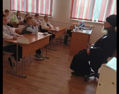 В декабре 2025 года иеродиакон Филарет (Каширский) провел занятие в школе №19 «Выбор» мкр. Врангель.