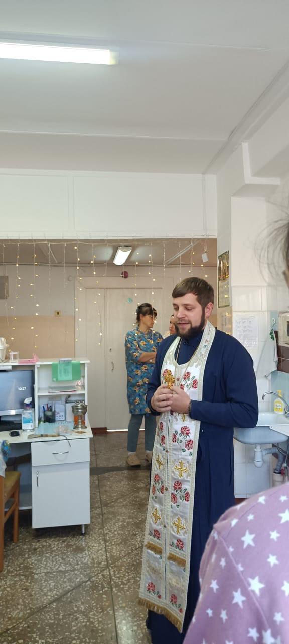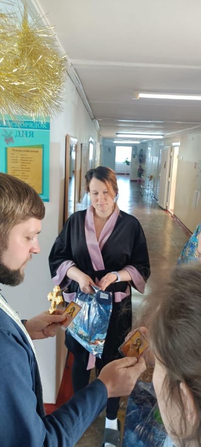 В дни Рождественских святок, настоятель храма Рождества Христова г. Находки иерей Иоанн Капитанюк посетил городской родильный дом, где поздравил рожениц со светлым праздником Рождества Христова, пожелал здоровья, терпения и рождественской радости. Затем батюшка окропил всех святой водой и подарил сладкие гостинцы.