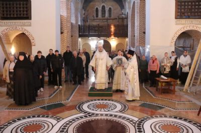 После богослужения Владыка возглавил праздничное славление Рождеству Христову и поздравил прихожан с продолжающимися Рождественскими святками.