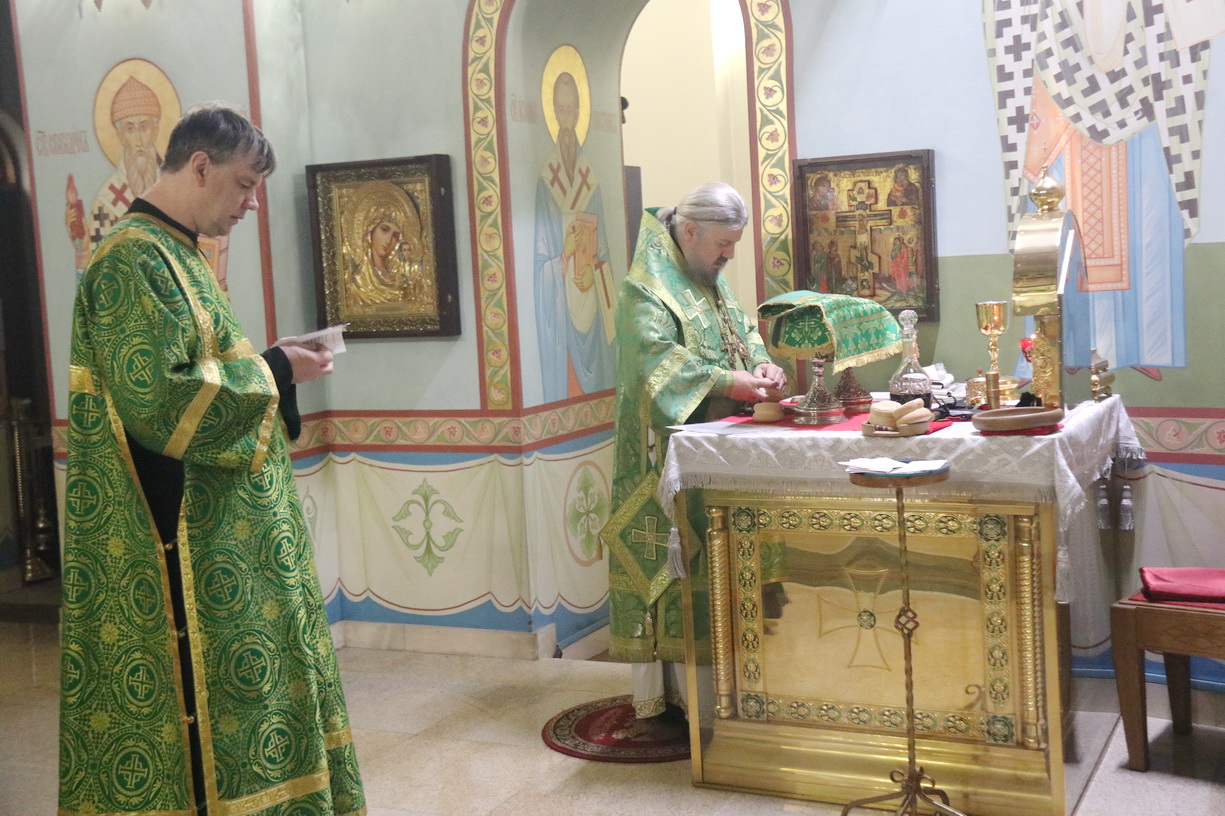 Его Преосвященству сослужили: иерей Андрей Попов и иеромонах Ермоген (Крещенко).
