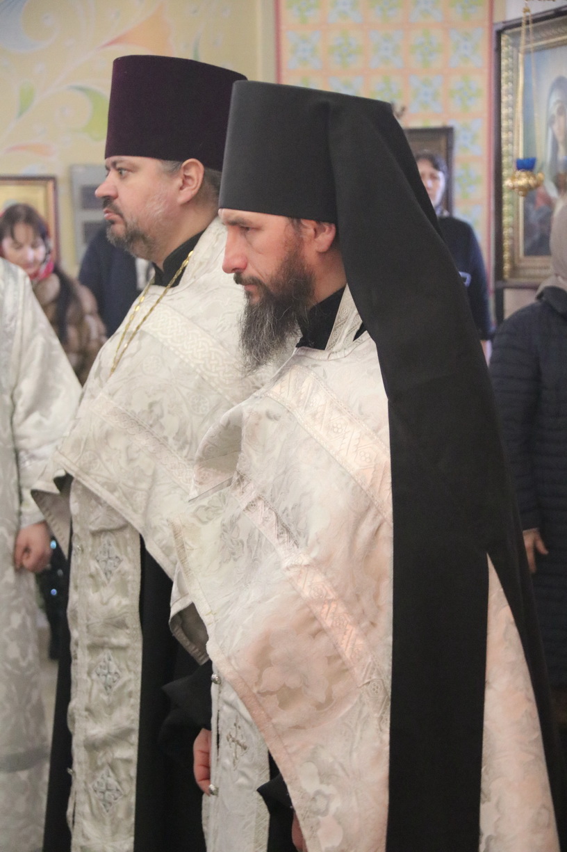 На утрене всенощного бдения, после чтения уставного Евангельского зачала, Владыка помазал духовенство и прихожан освященным елеем.