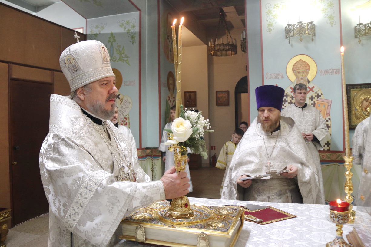 Его Преосвященству сослужили: иерей Андрей Калнин; иерей Виталий Шаркеев; иерей Андрей Попов; иеромонах Ермоген (Крещенко) и иерей Илия Гречишников.