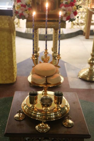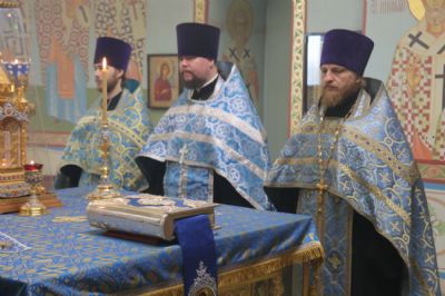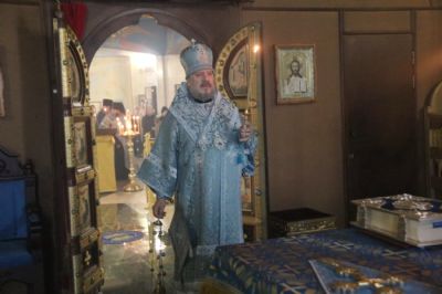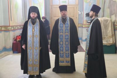 Его Преосвященству сослужило духовенство храма.