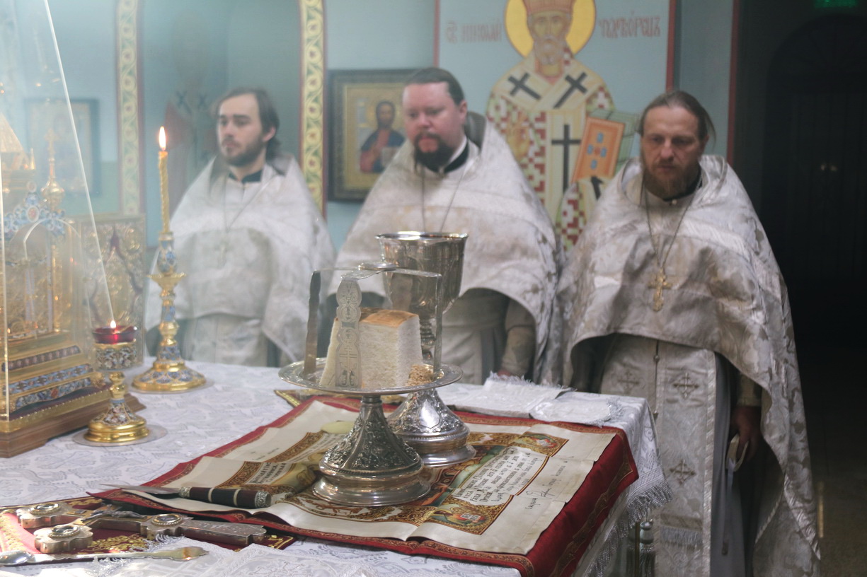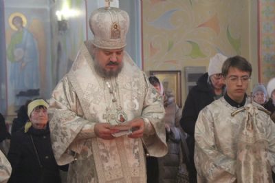 Его Преосвященству сослужили клирики соборного храма.
