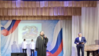 Иерей Виталий Шаркеев посетил праздничный концерт ко Дню защитника Отечества.
