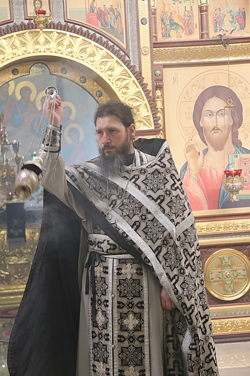 Его Преосвященству сослужили: иерей Андрей Калнин, ризничий собора; иерей Андрей Попов; иеромонах Ермоген (Крещенко) и иерей Илия Гречишников.