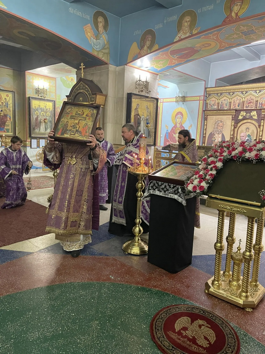 В канун Крестопоклонной недели епископ Николай возглавил всенощное бдение с чином выноса Креста в Казанском соборе г. Находки.