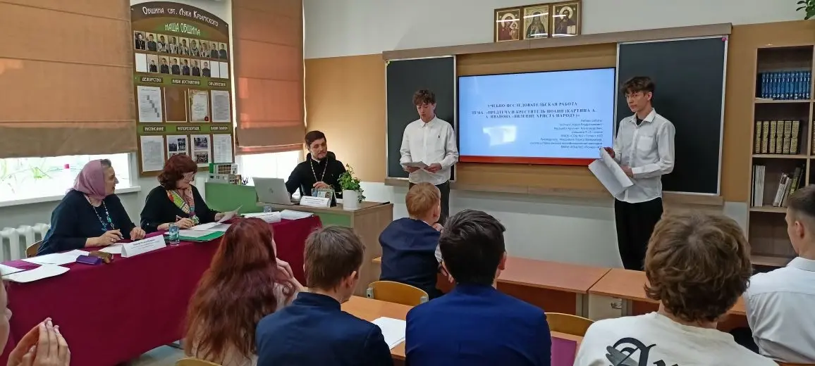 Юноши 9 «А» класса «СОШ N1 «Полюс» Честных Стефан и Карацюба Арсений выступали в секции № 1 «Роль Русской православной церкви в истории и культуре России» с работой «Предтеча Иоанн (Креститель) и его образ в картине А. Иванова «Явление Христа народу». За свою работу они получили Сертификаты участников.