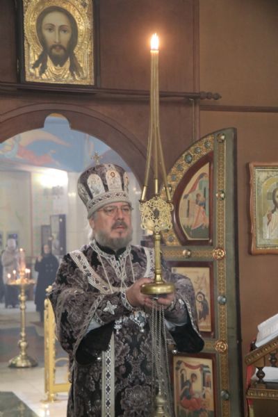 Его преосвященству сослужили: иерей Андрей Калнин; иерей Виталий Шаркеев; иерей Андрей Попов, иеромонах Ермоген (Крещенко); иерей Илия Гречишников.