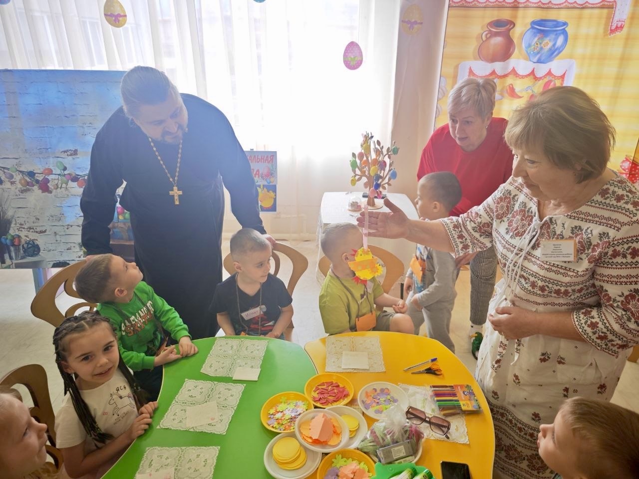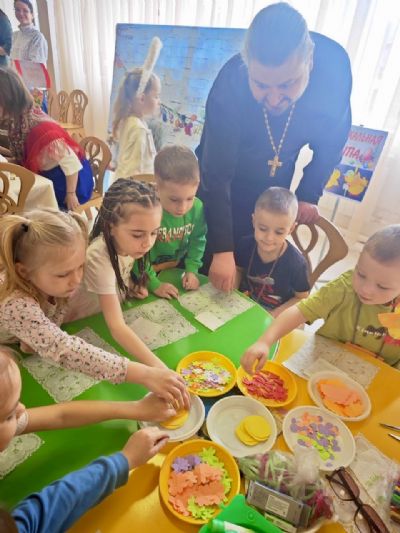 Священник посетил детский сад в преддверии Пасхи.