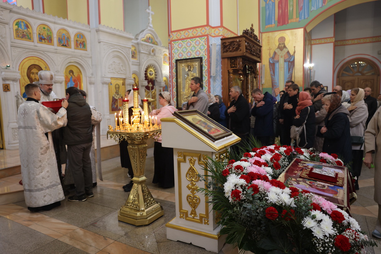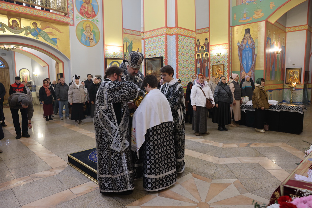 Его Преосвященству сослужили: иерей Андрей Калнин, ризничий Казанского собора; иерей Виталий Шаркеев; иерей Андрей Попов; иеромонах Ермоген (Крещенко) и иерей Илия Гречишников.