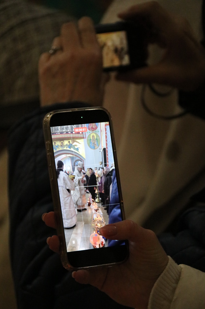 За богослужением были вознесены молитвы о мире на Святой земле.